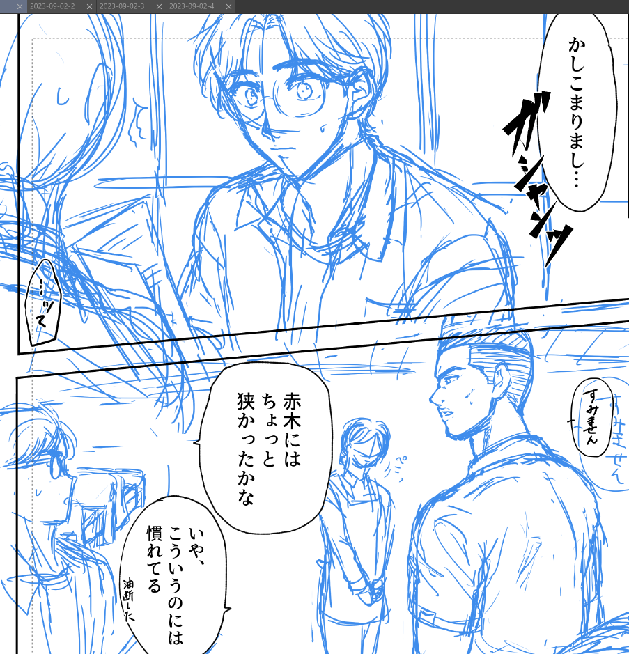 自分は敢えてコマ同士を大分離して隙間をあけて…ってのはわざとやってたんですけど、しばらくは少なめにしてみようかな…と思ったり